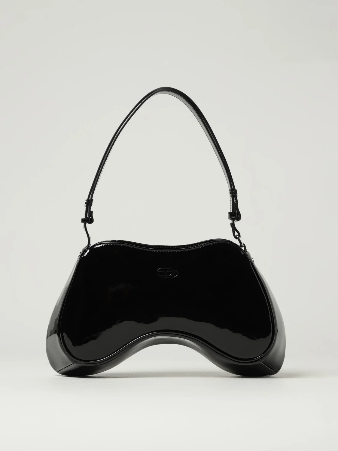 DESCRIPTION - Logo: Diesel Oval D - Lining: With zip pocket - Model: undefined - Handle: Adjustable - Sustainable: Made with recycled materials - Shape: Round - Closure: With flap and magnetic buttons - Materials: Synthetic leather - Pattern: Plain-colored DETAILS AND CARE Composition _ SIZE AND FIT Sizes Width : 33,5 cm Height: 14 cm Depth: 7 cm Handle height: 26 cm Designer code: X10201P6255 HA881 Giglio Code: H20948 Designer: Diesel Collection: Diesel Woman Category: Bags Diesel