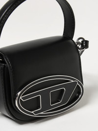 DESCRIPTION - Logo: Metallic, Diesel Oval D - Lining: With logo, Fabric - Model: Hand - Closure: With button flap - Shape: Round - Handle: Flat - Shoulder strap: Adjustable and removable - Measurements: Shoulder strap length from shoulder: 58 cm - Materials: Smooth leather - Pattern: All-over monogram DETAILS AND CARE Composition 100%PMU SIZE AND FIT Sizes Width : 13 cm Height: 8 cm Depth: 6,5 cm Handle height: 7 cm Designer code: X08709PR818 T8013 Giglio Code: E73330 Designer: Diesel Collection: Diesel Woman Category: Bags Diesel