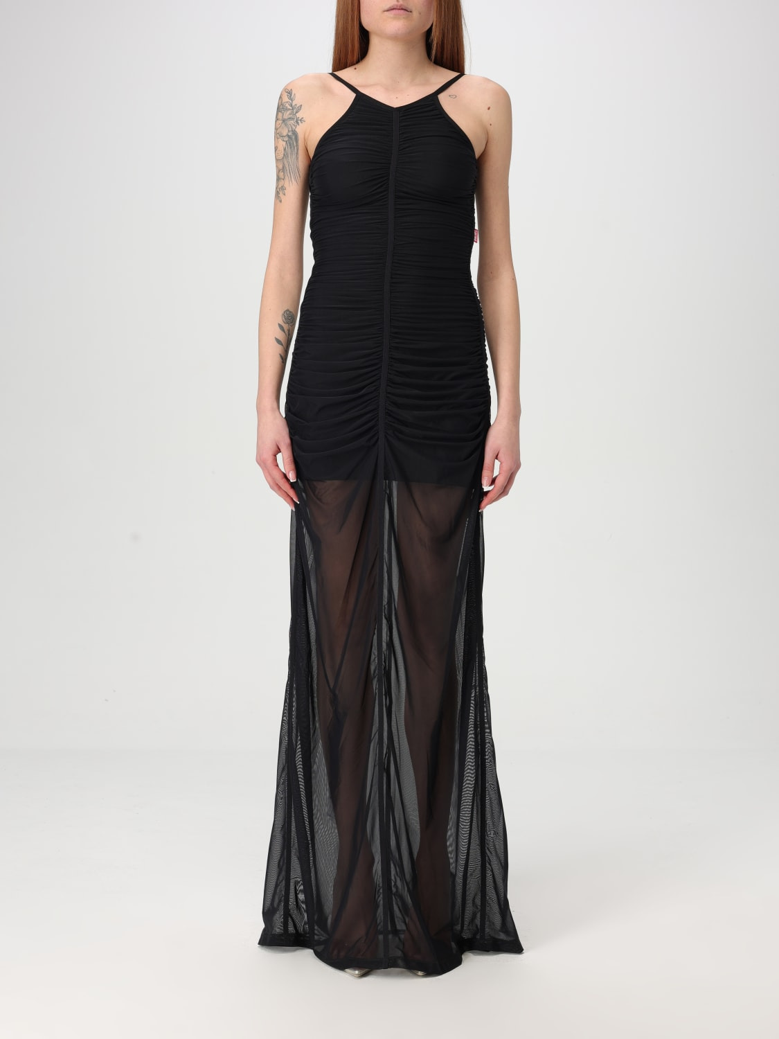 DESCRIPTION - Style: Contemporary - Neckline: U neckline - Shoulders: With thin shoulder straps - Bottom: With straight hemline - Model: Curled - Length: Long dresses - Occasion: Evening and party dresses - Sleeves: Off-the-shoulder dresses - Materials: Tulle - Pattern: Plain-colored DETAILS AND CARE Composition polyamide 83% elastane 17% SIZE AND FIT Sizes not available Size and fit Regular fit Designer code: A161240BMBC 9XX Giglio Code: G52903 Designer: Diesel Collection: Diesel Woman Category: Clothing Diesel