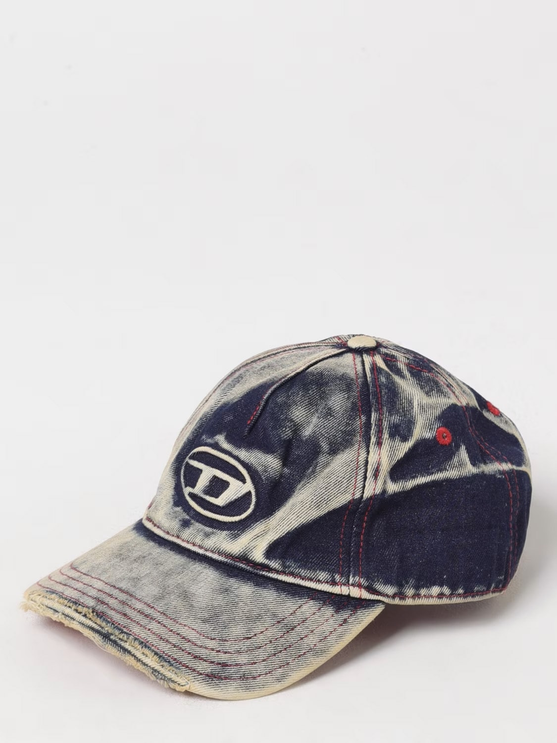 DESCRIPTION - Logo: Contrasting, Monogram - General: Usured effect - Model: Baseball - Closure: With adjustable strap - Components: Rigid visor - Materials: Bleached denim - Pattern: All-over monogram DETAILS AND CARE Composition AF SIZE AND FIT Sizes not available Designer code: A064670DGAV 01 Giglio Code: G56072 Designer: Diesel Collection: Diesel Men Category: Accessories Diesel