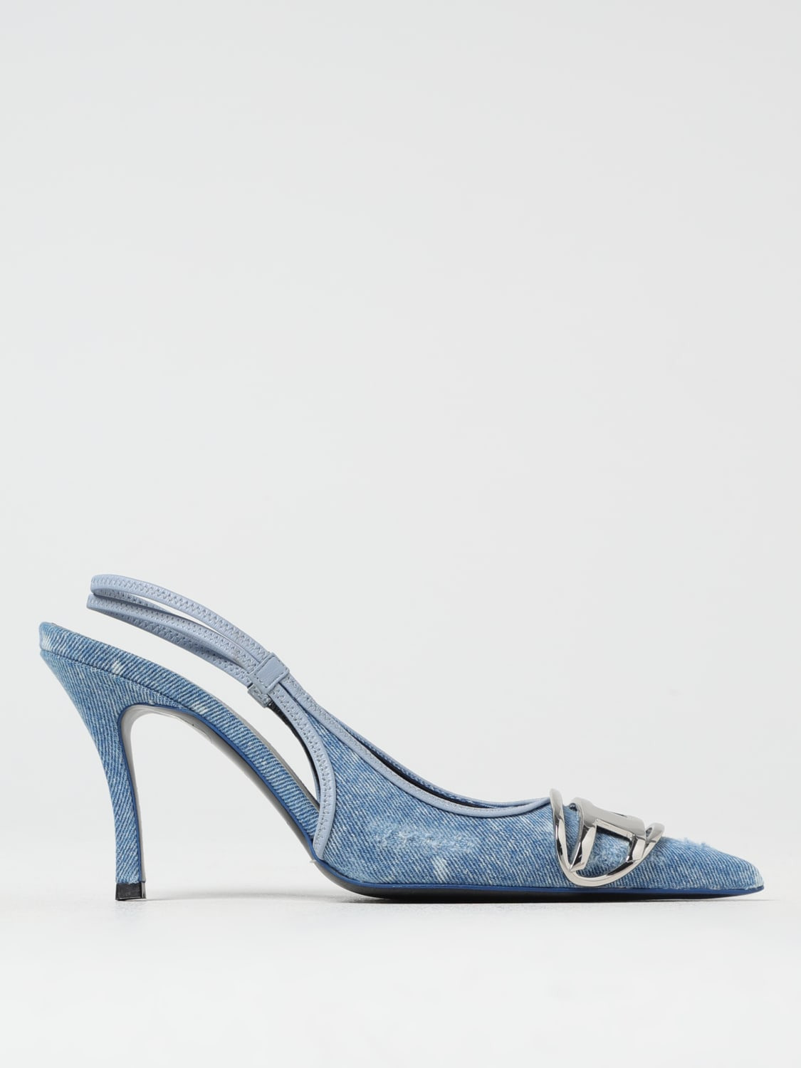 DESCRIPTION - Logo: Metallic - Lining: With logo - Model: Slingback - Toe: Almond - Sole: Leather - Heel: With stretch strap , undefined - Materials: Bleached denim - Pattern: Monogram DETAILS AND CARE Composition 95%CO 5%PCP SIZE AND FIT Sizes Heel: 9 cm Designer code: Y02985PS288T6 348 Giglio Code: G55308 Designer: Diesel Collection: Diesel Woman Category: Shoes Diesel