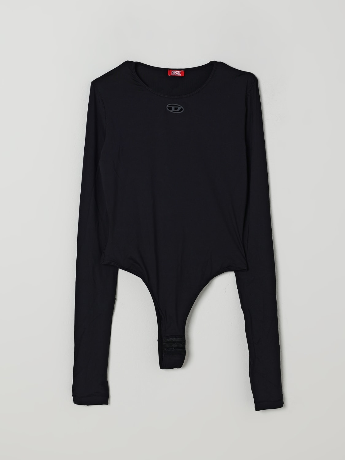 DESCRIPTION - Style: Underground - Neckline: Crewneck - Shoulders: Regular - Closure: With interlocking hook - Logo: Diesel Oval D - Model: Stretch - Sleeves: Long sleeve tops - Materials: Nylon - Pattern: Logo DETAILS AND CARE Composition 90% nylon 10% elastan SIZE AND FIT Sizes not available Size and fit Slim fit Designer code: A183170IKBN 900 Giglio Code: H16541 Designer: Diesel Collection: Diesel Woman Category: Clothing Diesel