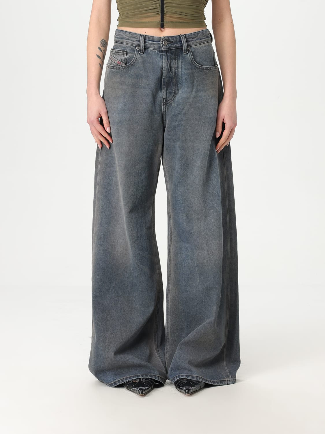 DESCRIPTION - Style: Urban-street - Pockets: 5-pocket - Waist: undefined - Bottom: With straight hemline - Closure: With button and zip - Materials: Cotton denim - Pattern: Plain-colored DETAILS AND CARE Composition co SIZE AND FIT Sizes not available Size and fit Oversize Designer code: A0692509L46 1 Giglio Code: G63110 Designer: Diesel Collection: Diesel Woman Category: Clothing Diesel