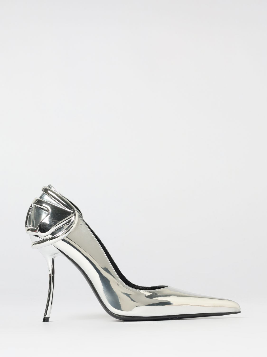 DESCRIPTION - Style: Glamour - Occasion: Evening and party - Logo: Diesel Oval D, Tone-on-tone, With logo - Toe: Almond - Sole: Leather - Lining: With logo - Model: In vernice - Heel: Tacco alto curvo - Materials: Synthetic leather - Pattern: Plain-colored DETAILS AND CARE Composition not available SIZE AND FIT Sizes Heel: 10,5 cm Designer code: Y03426P1660 T9002 Giglio Code: H27459 Designer: Diesel Collection: Diesel Woman Category: Shoes Diesel