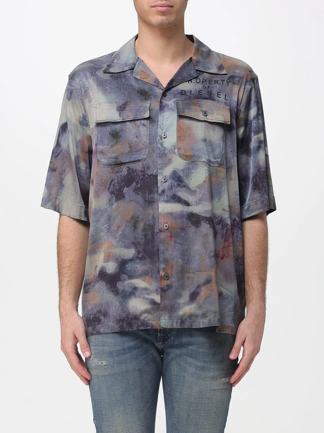 DESCRIPTION - Style: Casual, Urban-street - Neck: Cuban collar - Shoulders: Regular - Closure: With buttons - Pockets: Patch pocket with flap and button - Bottom: With straight hemline - Sleeves: Short sleeve shirts - Materials: Viscose - Pattern: Camo DETAILS AND CARE Composition not available SIZE AND FIT Sizes not available Size and fit Regular fit Designer code: A218800DMBN 8ATA Giglio Code: I01743 Designer: Diesel Collection: Clothing Diesel Category: Clothing > Shirt