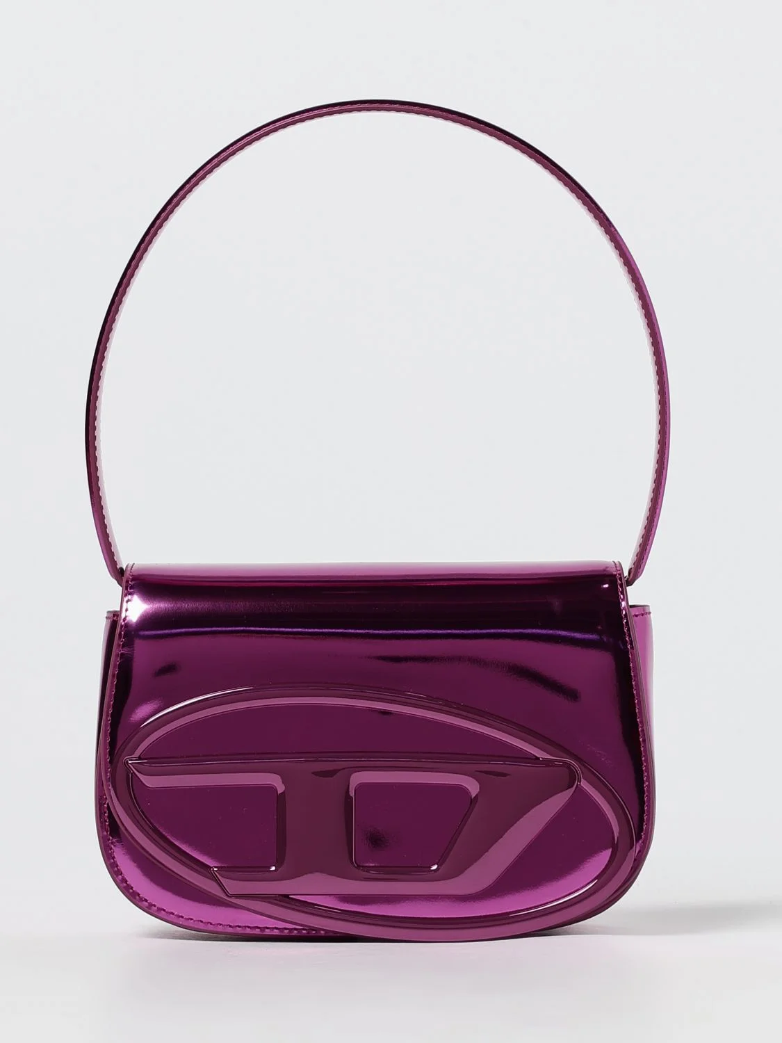 DESCRIPTION - Logo: Diesel Oval D, Metallic - Lining: With patch pockets - Model: Shoulder - Handle: Flat - Shoulder strap: Removable - Shape: Round - Closure: With flap and magnetic buttons - Materials: Patent leather - Pattern: Logo DETAILS AND CARE Composition 100%PMU SIZE AND FIT Sizes Width : 20,5 cm Height: 13,5 cm Depth: 7 cm Handle height: 19 cm Designer code: X08396PS202 T5007 Giglio Code: 430496 Designer: Diesel Collection: Diesel Woman Category: Bags Diesel