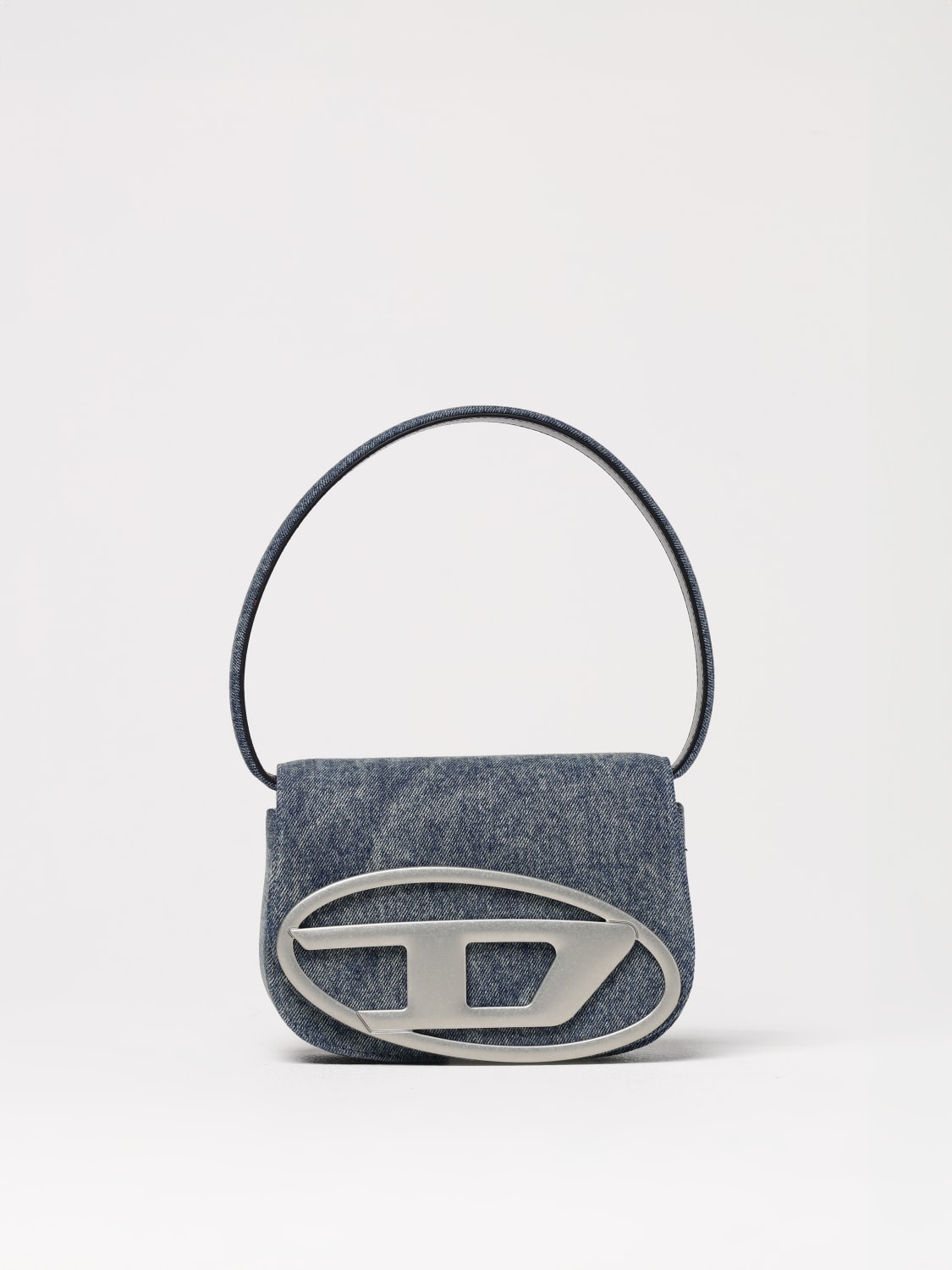 DESCRIPTION - Logo: Metallic, Monogram - Model: Shoulder - Closure: With button flap - Shape: Round - Handle: Flat - Shoulder strap: Adjustable and removable - Materials: Cotton denim - Pattern: All-over logo DETAILS AND CARE Composition 90%CO 10%PMU SIZE AND FIT Sizes Width : 20,5 cm Height: 13,5 cm Depth: 7 cm Handle height: 19 cm Designer code: X08396P1730 H8457 Giglio Code: 421023 Designer: Diesel Collection: Diesel Woman Category: Bags Diesel