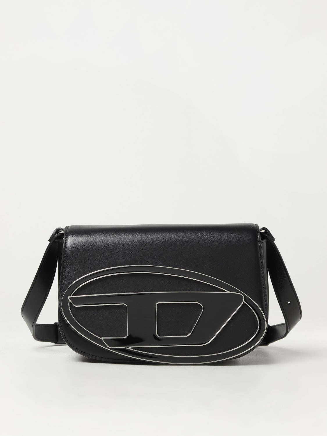 DESCRIPTION - Style: Sporty, Urban-street - Logo: Metallic, Diesel Oval D - Lining: With slit pockets, With patch pockets, Leather, With laminated logo, Logo fabric - Model: Crossbody - Closure: With button flap - Shoulder strap: Adjustable, Flat - Measurements: Shoulder strap length from shoulder: 50 cm - Materials: Smooth calfskin - Pattern: All-over monogram DETAILS AND CARE Composition 100% calf leather SIZE AND FIT Sizes Width : 24 cm Height: 14 cm Depth: 9 cm Designer code: X09568PR818 T8013 Giglio Code: F12470 Designer: Diesel Collection: Diesel Woman Category: Bags Diesel