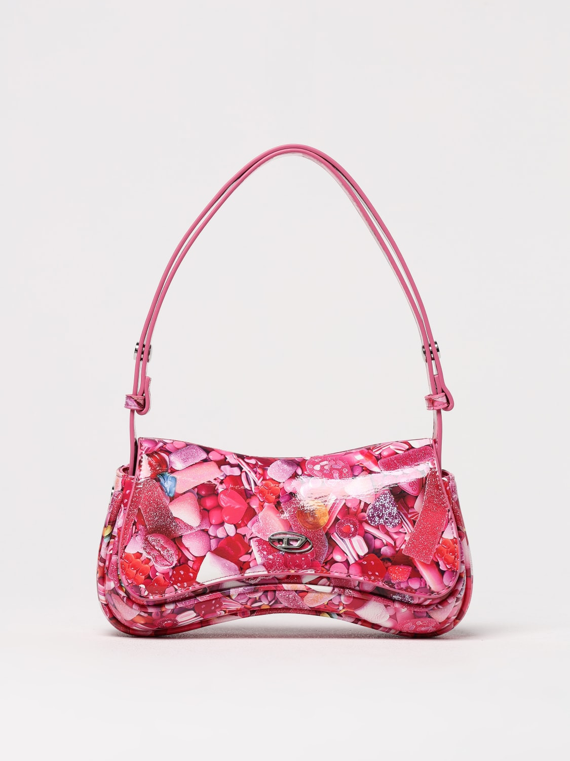 DESCRIPTION - Logo: Monogram - Model: undefined - Closure: With button flap - Shoulder strap: Adjustable - Shape: Round - Materials: Synthetic leather - Pattern: Floral DETAILS AND CARE Composition 100%PU SIZE AND FIT Sizes Width : 26 cm Height: 13 cm Depth: 6,5 cm Handle height: 21,5 cm Designer code: X10202P6019 HA767 Giglio Code: 421027 Designer: Diesel Collection: Diesel Woman Category: Bags Diesel