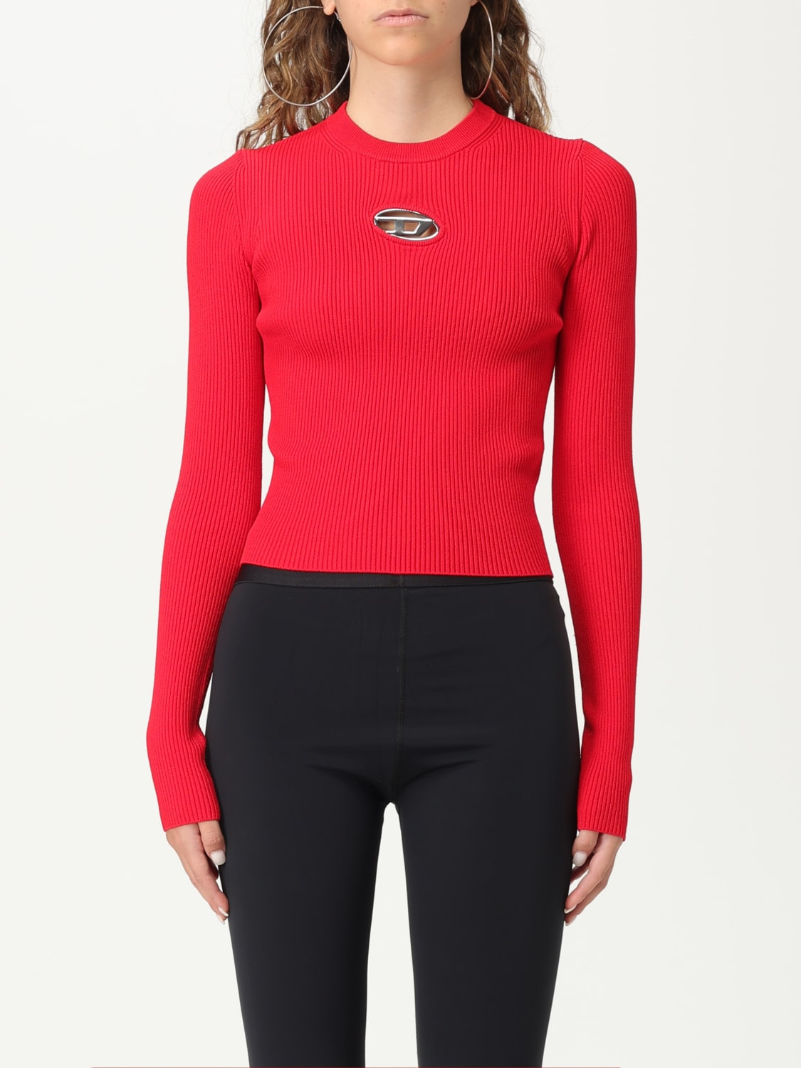 DESCRIPTION - Style: Sporty - Model: Ribbed - Neckline: Crewneck - Shoulders: Regular - Sleeves: Long - Bottom: With straight hemline - Logo: Diesel Oval D - Materials: Viscose blend - Pattern: Logo DETAILS AND CARE Composition 83%VI 17%PL SIZE AND FIT Sizes not available Size and fit Slim fit Designer code: A153280DLAX 42A Giglio Code: 430523 Designer: Diesel Collection: Diesel Woman Category: Clothing Diesel