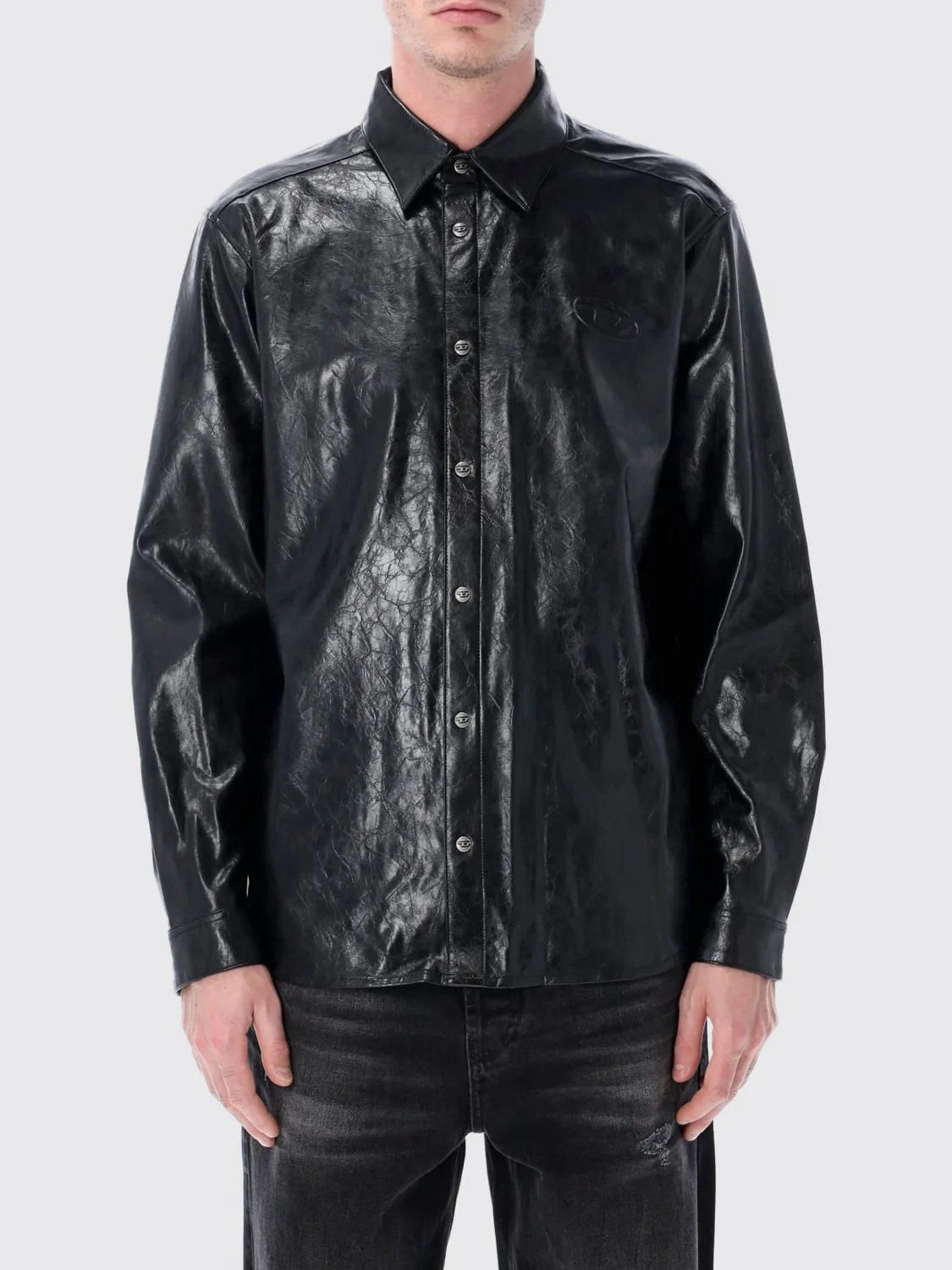 DESCRIPTION - Style: Contemporary - Neck: Classic - Shoulders: Regular - Cuffs: 1-button - Closure: With buttons - Bottom: With curved hemline - Sleeves: Long sleeve shirts - Materials: Synthetic leather - Pattern: Plain-colored DETAILS AND CARE Composition 100% viscose 100% polyurethne SIZE AND FIT Sizes not available Size and fit Regular fit Designer code: A200210QMBU 9XX Giglio Code: H90279 Designer: Diesel Collection: Diesel Men Category: Clothing Diesel