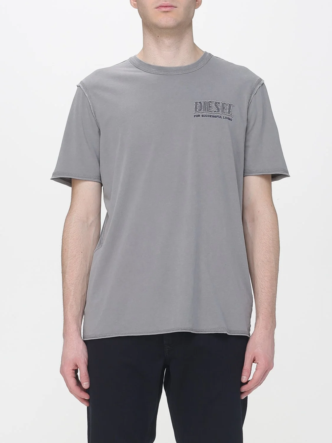 DESCRIPTION - Style: Sporty - Logo: Contrasting - Model: Crewneck - Neckline: Crewneck - Shoulders: Regular - Sleeves: Short - Bottom: With straight hemline - Materials: Cotton - Pattern: Logo, Plain-colored DETAILS AND CARE Composition 100% cotton SIZE AND FIT Sizes not available Size and fit Regular fit Designer code: A209580KMAH 97D Giglio Code: H80100 Designer: Diesel Collection: Diesel Men Category: Clothing Diesel
