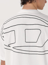 DESCRIPTION - Style: Underground - Logo: Diesel Oval D - Model: Crewneck - Neckline: Crewneck - Shoulders: Relaxed - Sleeves: Short - Bottom: With straight hemline - Materials: Cotton - Pattern: Logo DETAILS AND CARE Composition 100%CO SIZE AND FIT Sizes not available Size and fit Oversize Designer code: A113020HGAM 141 Giglio Code: 420950 Designer: Diesel Collection: Diesel Men Category: Clothing Diesel