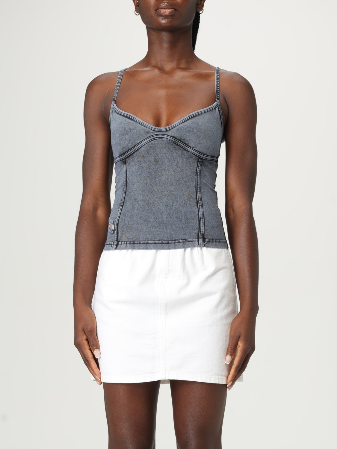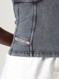 DESCRIPTION - Style: Urban-street - Model: Triangle - Neckline: Triangle - Shoulders: With thin shoulder straps - Bottom: With straight hemline - Sleeves: Off-the-shoulder tops - Materials: Cotton denim - Pattern: Plain-colored DETAILS AND CARE Composition not available SIZE AND FIT Sizes not available Size and fit Slim fit Designer code: A183610KIBY 01A Giglio Code: H19021 Designer: Diesel Collection: Diesel Woman Category: Clothing Diesel