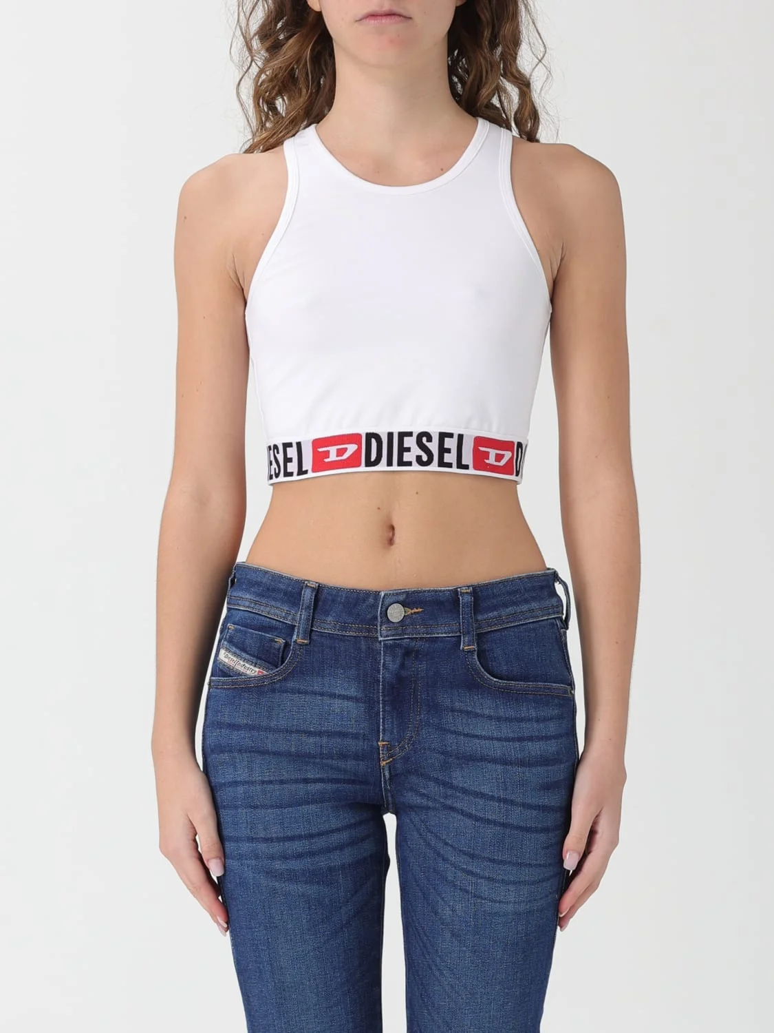 DESCRIPTION - Logo: Contrasting - Sleeves: Off-the-shoulder tops - Materials: Stretch cotton - Pattern: Logo, Plain-colored DETAILS AND CARE Composition 95%CO 5%EA SIZE AND FIT Sizes not available Designer code: A176380NJAP 100 Giglio Code: G75641 Designer: Diesel Collection: Diesel Woman Category: Clothing Diesel