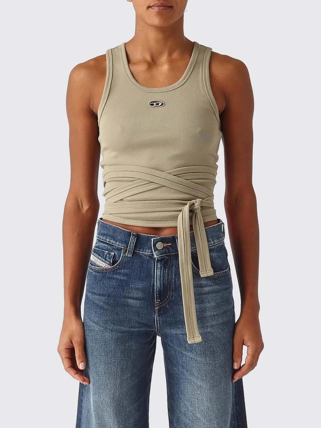 DESCRIPTION - Style: Contemporary, Urban-street - Shoulders: With thin shoulder straps - Sleeves: Sleeveless - Waist: With waist band to tie - Bottom: With straight hemline - Neckline: Round - Materials: Cotton - Pattern: Plain-colored DETAILS AND CARE Composition 94%Cotton 6%Elastane-Spandex SIZE AND FIT Sizes not available Size and fit Slim fit Designer code: A210190EJAI 5GD Giglio Code: 438902 Designer: Diesel Collection: Clothing Diesel Category: Clothing > T-Shirt