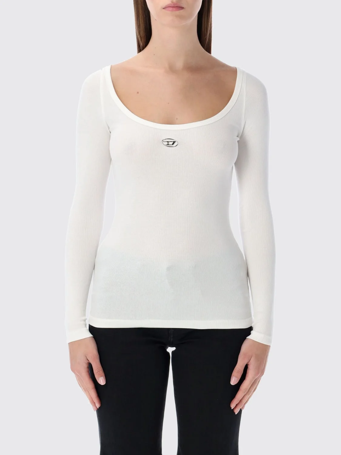 DESCRIPTION - Style: Basic - Shoulders: Regular - Sleeves: Long - Bottom: With straight hemline - Logo: Diesel Oval D - Neckline: Round - Materials: Stretch cotton - Pattern: Logo, Plain-colored DETAILS AND CARE Composition 96%Cotton 4%Elastane-Spandex SIZE AND FIT Sizes not available Size and fit Slim fit Designer code: A199090JMBA 141 Giglio Code: 438894 Designer: Diesel Collection: Diesel Woman Category: Clothing Diesel