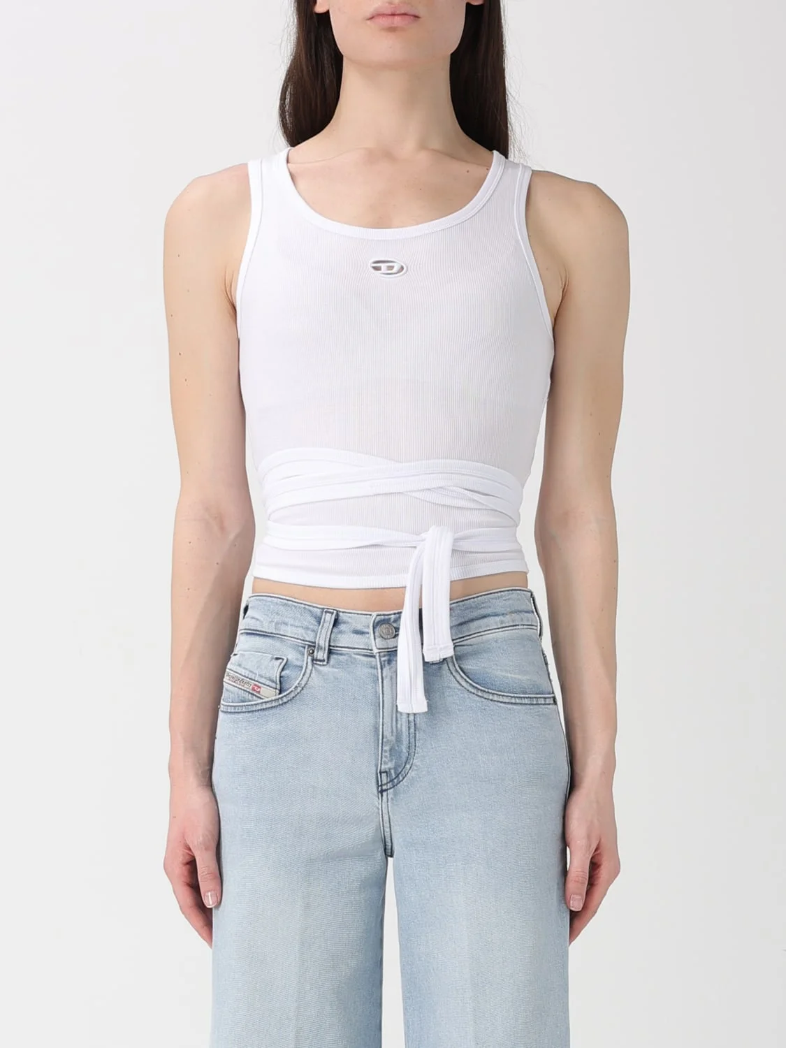 DESCRIPTION - Style: Contemporary, Urban-street - Shoulders: With thin shoulder straps - Sleeves: Sleeveless - Waist: With waist band to tie - Bottom: With straight hemline - Neckline: Round - Materials: Cotton - Pattern: Plain-colored DETAILS AND CARE Composition 94%Cotton 6%Elastane-Spandex SIZE AND FIT Sizes not available Size and fit Slim fit Designer code: A210190EJAI 100 Giglio Code: 438902 Designer: Diesel Collection: Diesel Woman Category: Clothing Diesel