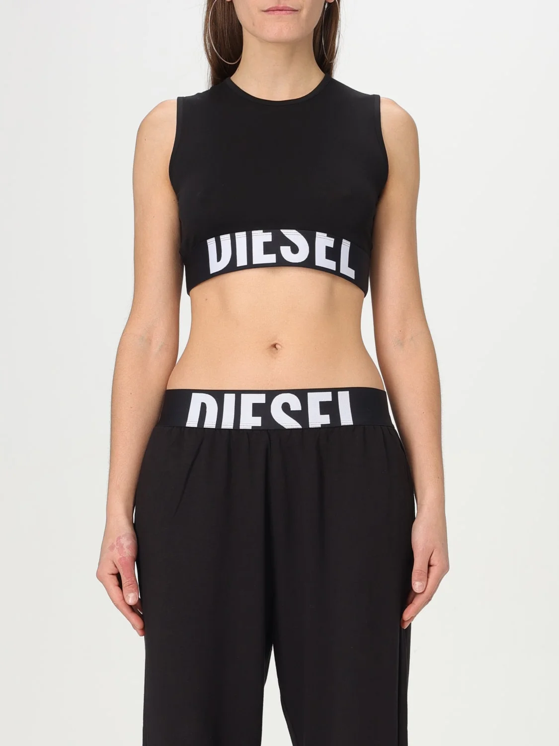 DESCRIPTION - Style: Sporty - Logo: Contrasting, Print - Neckline: Crewneck - Shoulders: Regular - Bottom: With straight hemline - Sleeves: Sleeveless tops - Materials: Stretch technical fabric - Pattern: Logo DETAILS AND CARE Composition AF SIZE AND FIT Sizes not available Size and fit Cropped fita , Slim fit Designer code: A176610HMAU 9XX Giglio Code: G56056 Designer: Diesel Collection: Diesel Woman Category: Clothing Diesel