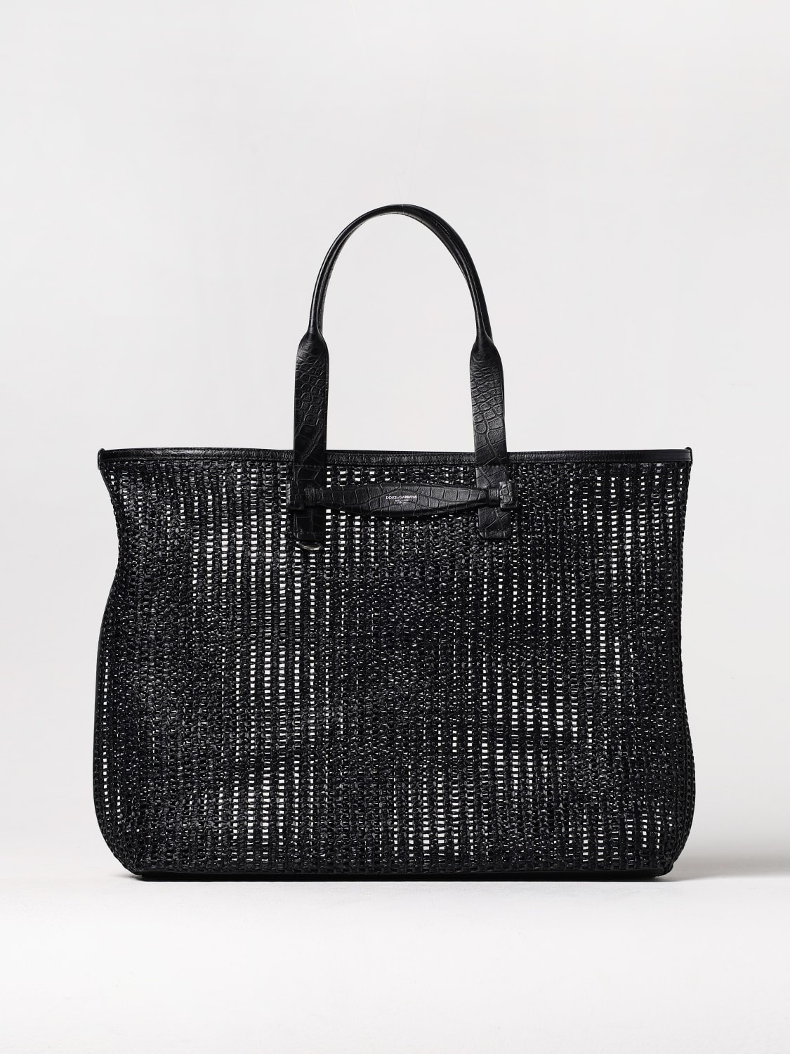 DESCRIPTION - Style: Sporty, Underground - Occasion: Day - Logo: Laminated - Details: With metallic ring - Model: Hand, Tote, Pierced - Closure: Absent - Shape: Rectangular - Handle: Double - Materials: Fishnet nylon, Calfskin - Pattern: Plain-colored DETAILS AND CARE Composition not available SIZE AND FIT Sizes Width : 44 cm Height: 50 cm Depth: 14 cm Designer code: BM2453A9O94 8B956 Giglio Code: G62205 Designer: Dolce & Gabbana Collection: Dolce & Gabbana Men Category: Bags Dolce & Gabbana