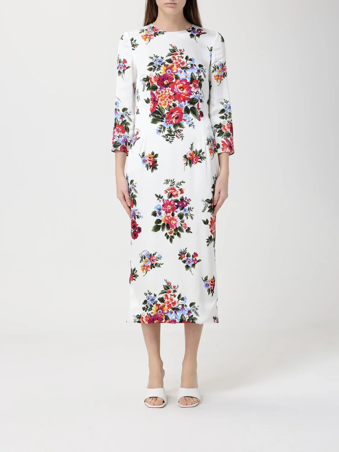 DESCRIPTION - Style: Romantic - Neckline: Crewneck - Shoulders: Regular - Closure: Back closure with zip - Bottom: With straight hemline - Length: Midi dresses - Occasion: Morning dresses - Sleeves: Long sleeve dresses - Materials: Crepe - Pattern: Floral DETAILS AND CARE Composition Polyester | Esterno: Poliestere 96%, Nylon 4% SIZE AND FIT Sizes not available Size and fit Regular fit Designer code: F612VTFSICE HA5ZO Giglio Code: I08676 Designer: Dolce & Gabbana Collection: Clothing Dolce & Gabbana Category: Clothing > Dress