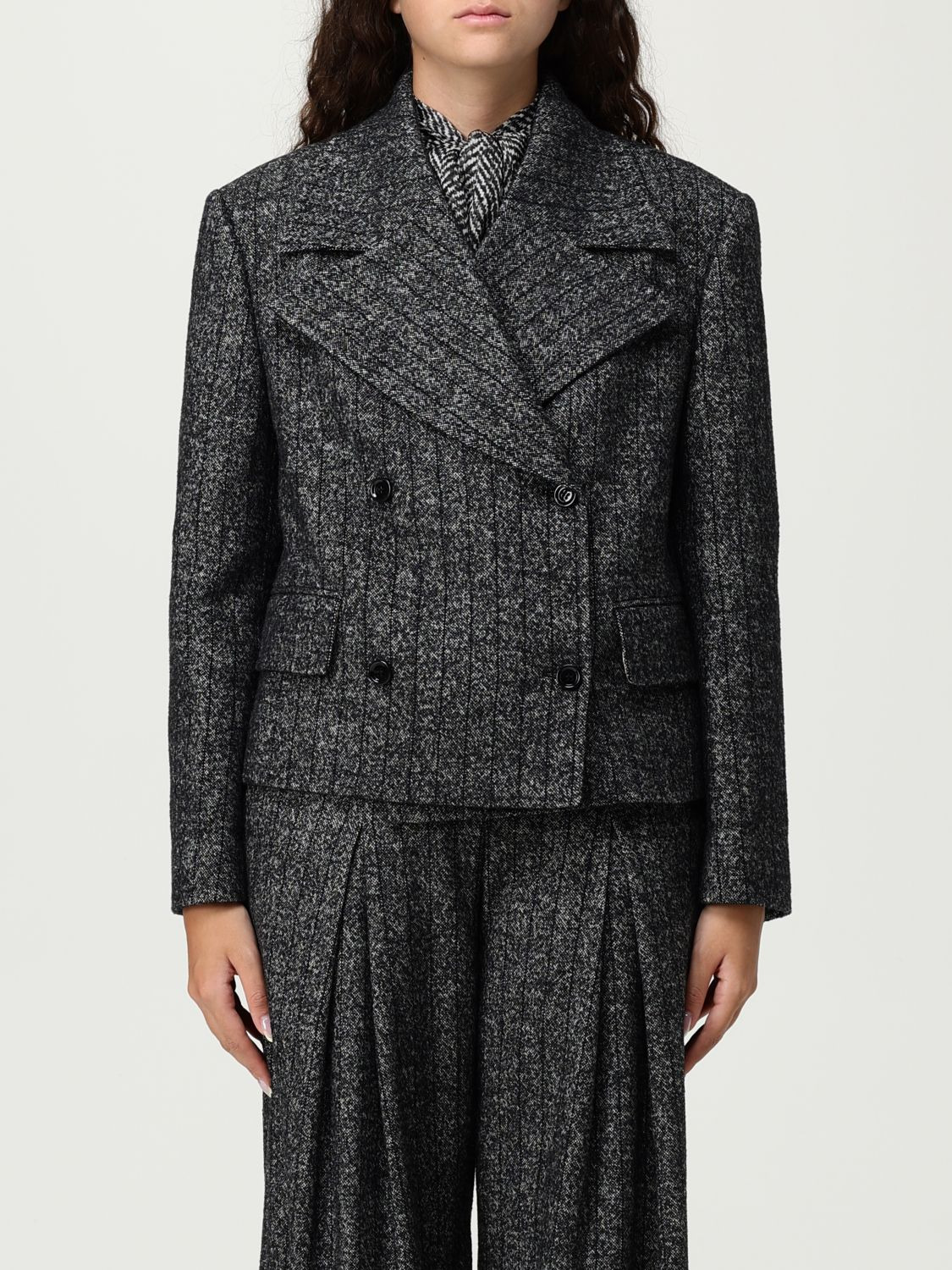 DESCRIPTION - Style: Elegant - Model: Double-breasted - Shoulders: Regular - Sleeves: Long - Closure: With buttons - Bottom: With straight hemline - Neck: Lapel - Pockets: With flap - Length: Short jackets - Materials: Virgin wool - Pattern: Stripes DETAILS AND CARE Composition not available SIZE AND FIT Sizes not available Size and fit Regular fit Designer code: F27FXTFRZAN S8051 Giglio Code: H32773 Designer: Dolce & Gabbana Collection: Dolce & Gabbana Woman Category: Clothing Dolce & Gabbana