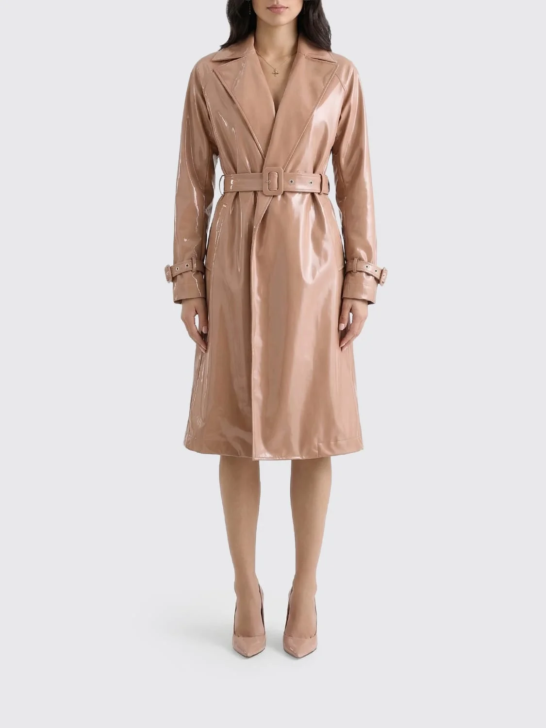 Coated faux leather trench coat