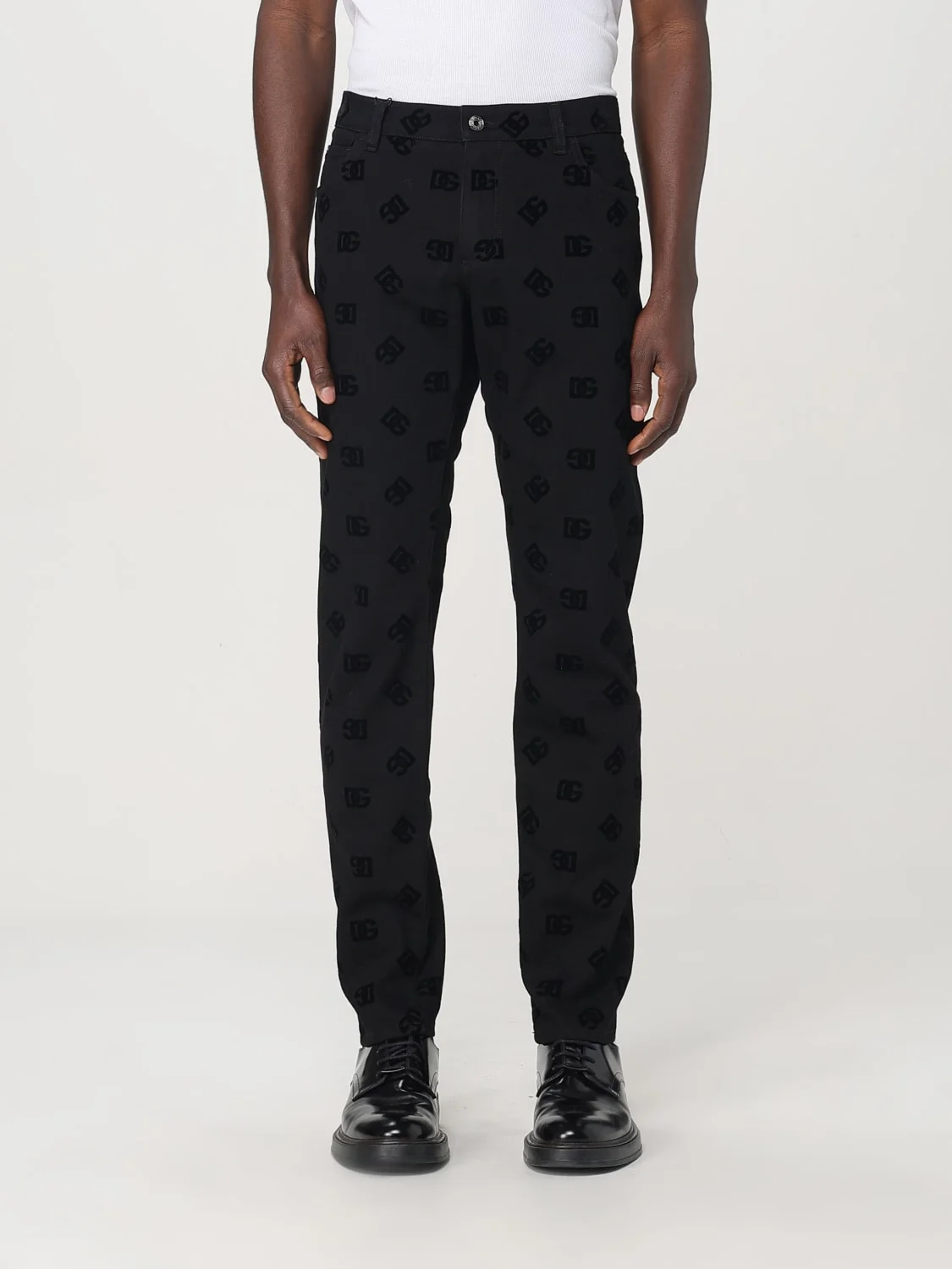 DESCRIPTION - Style: Contemporary - Logo: DG monogram - Pockets: 5-pocket - Waist: Medium - Bottom: With straight hemline - Closure: With button and zip - Materials: Cotton denim - Pattern: Monogram DETAILS AND CARE Composition 98% cotton, 2% elastane SIZE AND FIT Sizes not available Size and fit Slim fit Designer code: GY07CDG8MN6 S9001 Giglio Code: G60356 Designer: Dolce & Gabbana Collection: Dolce & Gabbana Men Category: Clothing Dolce & Gabbana