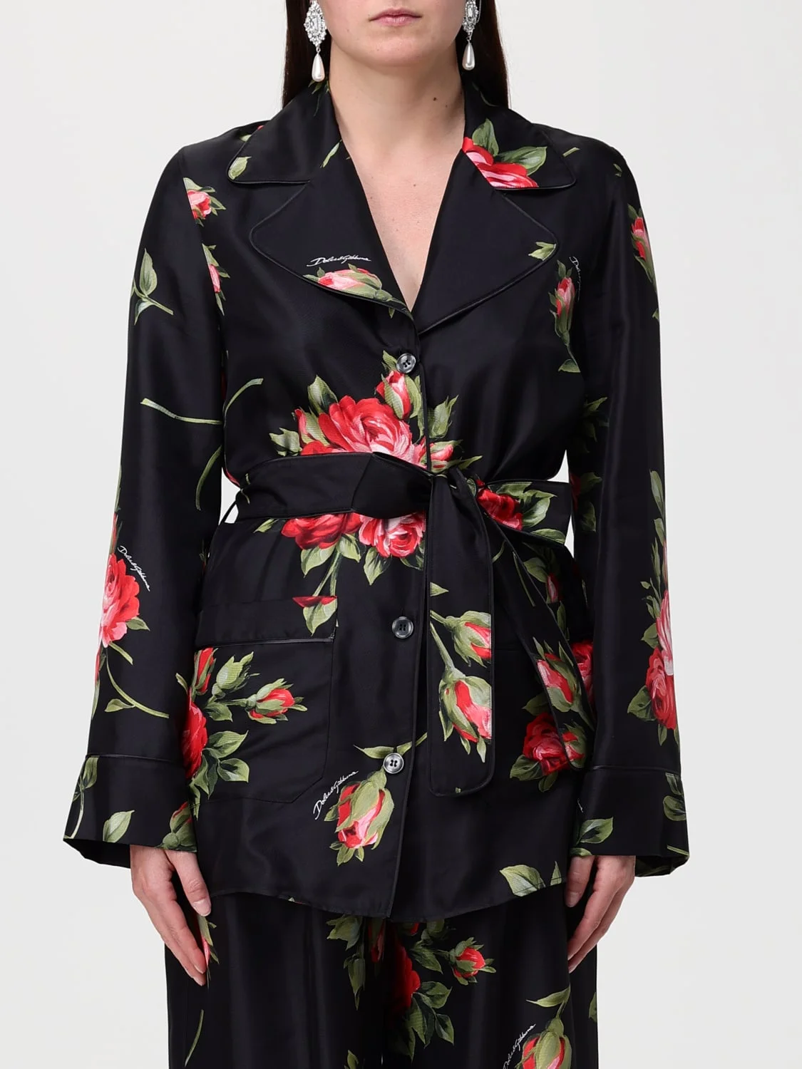 DESCRIPTION - Style: Romantic - Shoulders: Relaxed - Closure: With buttons - Pockets: Patch pocket - Waist: With waist band to tie - Bottom: With straight hemline - Neck: Lapel - Sleeves: Long sleeve shirts - Materials: Silk twill - Pattern: Floral DETAILS AND CARE Composition not available SIZE AND FIT Sizes not available Size and fit Regular fit Designer code: F5Q03TIS11G HN5ZN Giglio Code: H93490 Designer: Dolce & Gabbana Collection: Clothing Dolce & Gabbana Category: Clothing > Shirt