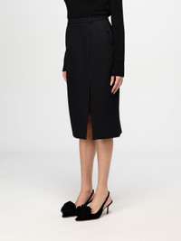 Calf-length wool gabardine skirt with slit