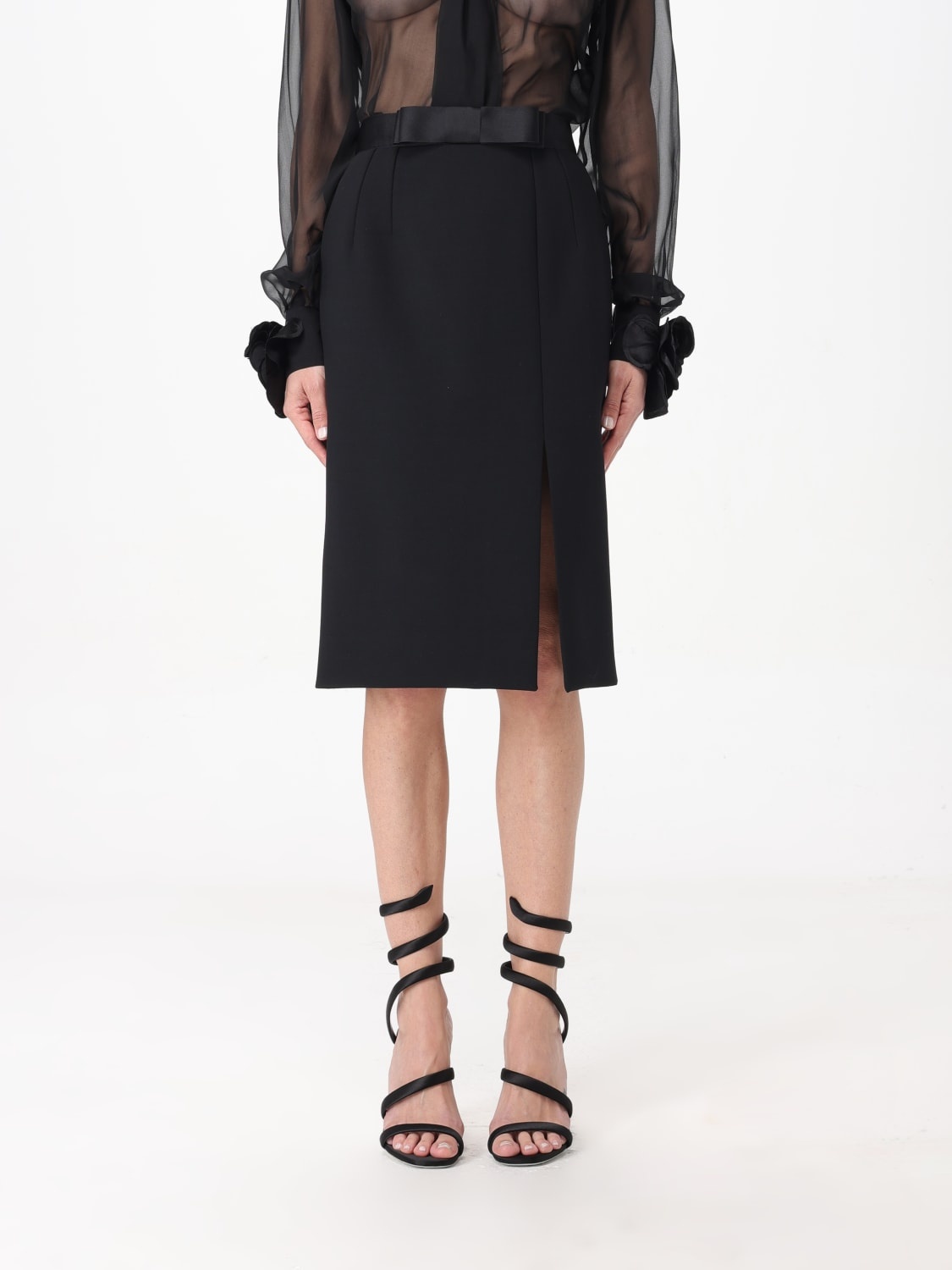 DESCRIPTION - Style: Elegant - Details: With bow - Closure: Back closure with zip - Pockets: America - Waist: High - Bottom: With back slit - Length: undefined - Materials: Wool blend - Pattern: undefined DETAILS AND CARE Composition 60% wv, 37% pa, 3% ea SIZE AND FIT Sizes not available Size and fit Slim fit Designer code: F4CVBTFUBF1 N0000 Giglio Code: F44125 Designer: Dolce & Gabbana Collection: Dolce & Gabbana Woman Category: Clothing Dolce & Gabbana