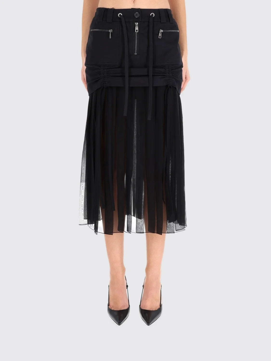 Twill midi skirt with chiffon
