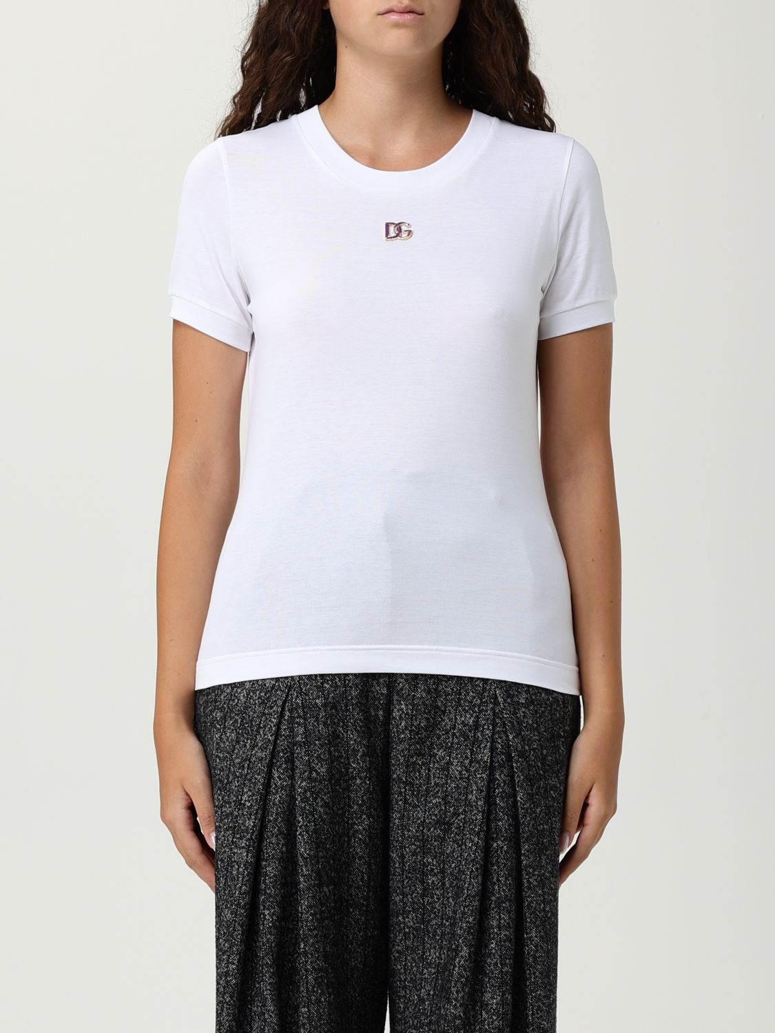 DESCRIPTION - Style: Sporty - Model: Crewneck - Neckline: Crewneck - Shoulders: Regular - Sleeves: Short - Bottom: With straight hemline - Logo: DG monogram - Materials: Cotton - Pattern: Monogram DETAILS AND CARE Composition 100% Cotone SIZE AND FIT Sizes not available Size and fit Slim fit Designer code: F8U08ZGDDAV W0800 Giglio Code: H32784 Designer: Dolce & Gabbana Collection: Dolce & Gabbana Woman Category: Clothing Dolce & Gabbana