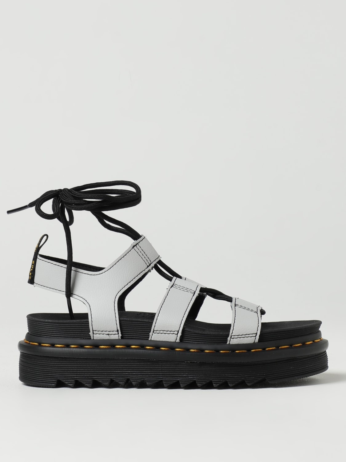 DESCRIPTION - Logo: Jacquard - Details: With back tab - Lining: Rubber - Model: Gladiator - Toe: Round - Ankle: With ribbon to tie - Sole: Platform - Heel: Low heel - Materials: Grained leather - Pattern: Plain-colored DETAILS AND CARE Composition Pelle SIZE AND FIT Sizes not available Designer code: 31617020 GREY Giglio Code: G87867 Designer: Dr. Martens Collection: Dr. Martens Woman Category: Shoes Dr. Martens