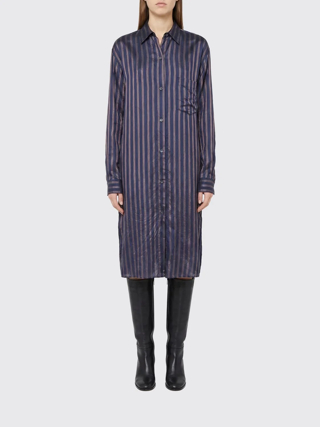 DESCRIPTION - Style: Casual - Model: Chemisier - Neck: Classic - Shoulders: Relaxed - Closure: With buttons - Bottom: With straight hemline - Length: Midi dresses - Occasion: Morning dresses - Sleeves: Long sleeve dresses - Materials: Cupro - Pattern: Stripes DETAILS AND CARE Composition Cupro | 100% CUPRO SIZE AND FIT Sizes not available Size and fit Relaxed fit Designer code: 2611310313276 509 Giglio Code: H90380 Designer: Dries Van Noten Collection: Dries Van Noten Woman Category: Clothing Dries Van Noten