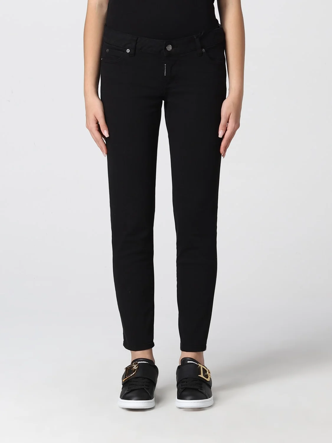 DESCRIPTION - Style: Classic - Pockets: 5-pocket - Waist: Low waist - Bottom: With straight hemline - Closure: With button and zip - Materials: Stretch denim - Pattern: Plain-colored DETAILS AND CARE Composition 98%CO 2%EA SIZE AND FIT Sizes not available Size and fit Cropped fita , Slim fit Designer code: S75LB0664S30733 900 Giglio Code: D19273 Designer: Dsquared2 Collection: Dsquared2 Woman Category: Clothing Dsquared2