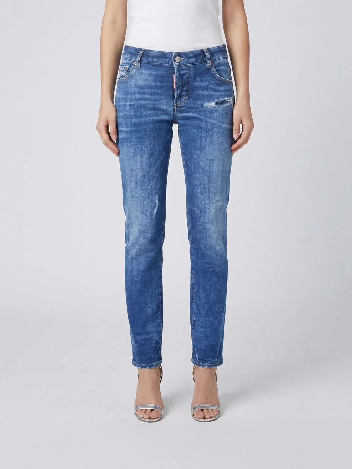 DESCRIPTION - Style: Casual, Urban-street - Pockets: 5-pocket - Waist: Medium waist - Bottom: With straight hemline - Closure: With button and zip - Materials: Cotton denim, Distressed denim - Pattern: Plain-colored DETAILS AND CARE Composition Cotton | 93% COTTON 4% POLYESTER 3% ELASTANE SIZE AND FIT Sizes not available Size and fit Slim fit Designer code: S75LB1164S30872 470 Giglio Code: H92967 Designer: Dsquared2 Collection: Dsquared2 Woman Category: Clothing Dsquared2