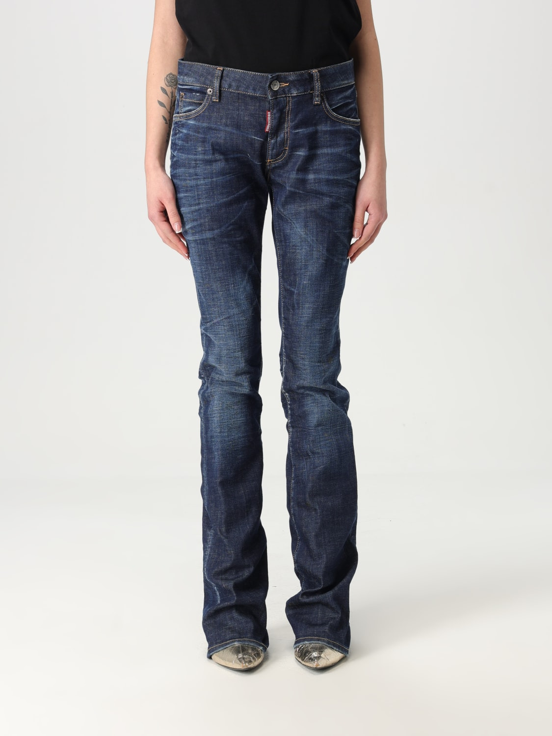DESCRIPTION - Style: Urban-street - Pockets: 5-pocket - Waist: Low waist - Bottom: With straight hemline - Closure: With button and zip - Materials: Cotton denim - Pattern: Plain-colored DETAILS AND CARE Composition Calf Leather 100%, Cotton 98%, Elastane 2% SIZE AND FIT Sizes not available Size and fit Slim fit Designer code: S75LB0945S30342 470 Giglio Code: G50419 Designer: Dsquared2 Collection: Dsquared2 Woman Category: Clothing Dsquared2