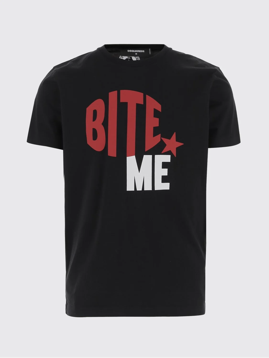 DESCRIPTION - Style: Basic, Casual, Urban-street - Neckline: Crewneck - Shoulders: Regular - Sleeves: Short - Bottom: With straight hemline - Materials: Cotton - Pattern: Slogan DETAILS AND CARE Composition GENERAL COTTON 100 - SIZE AND FIT Sizes not available Size and fit Regular fit Designer code: S74GD1451D20020 900 Giglio Code: H15470 Designer: Dsquared2 Collection: Dsquared2 Men Category: Clothing Dsquared2