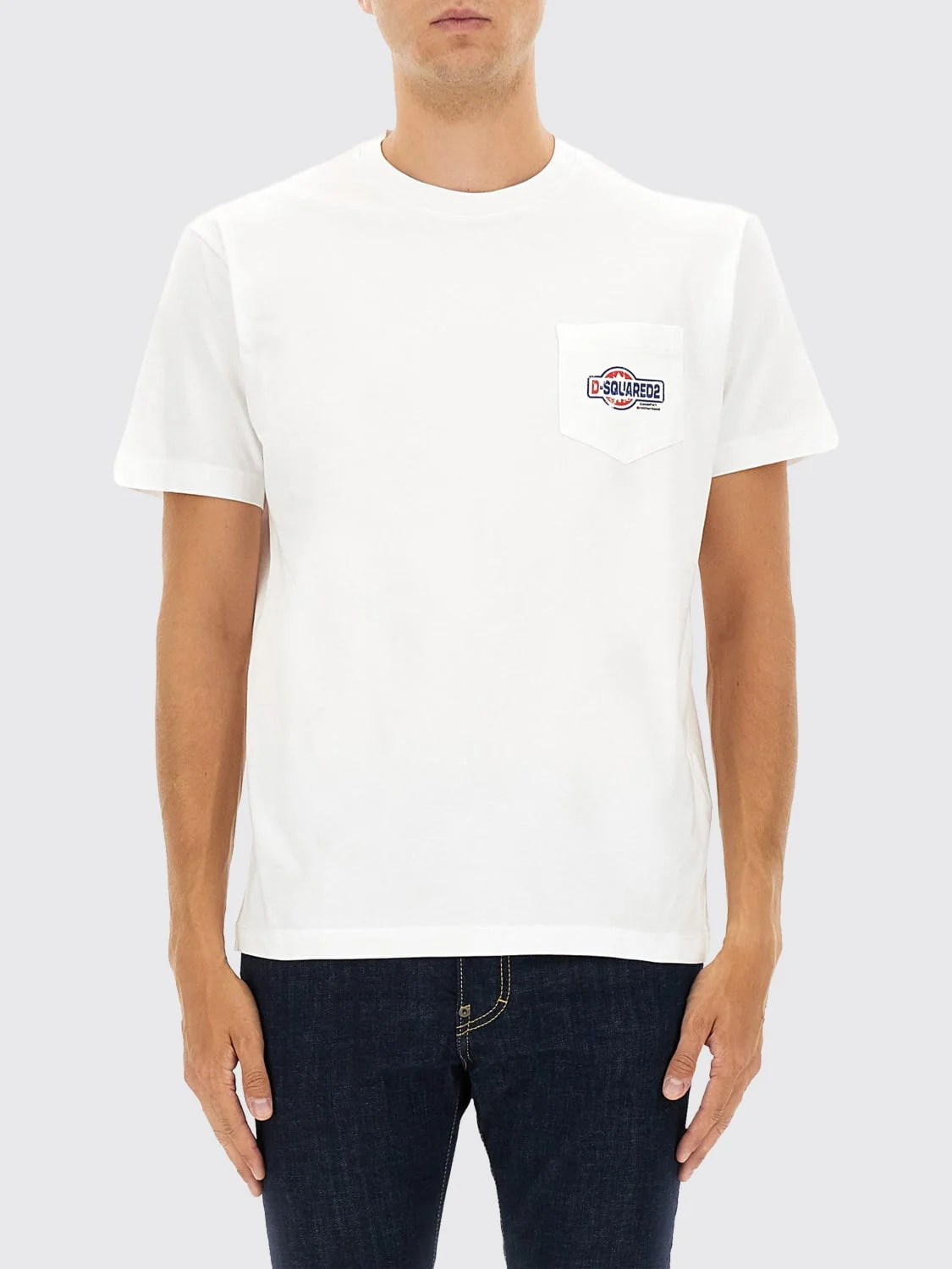 DESCRIPTION - Style: Sporty - Logo: Contrasting, Print - Model: Crewneck - Neckline: Crewneck - Shoulders: Relaxed - Sleeves: Short - Pockets: Patch pocket - Bottom: With straight hemline - Materials: Cotton - Pattern: Logo DETAILS AND CARE Composition 100% cotton SIZE AND FIT Sizes not available Size and fit Regular fit Designer code: S74GD1449D20020 100 Giglio Code: H18391 Designer: Dsquared2 Collection: Dsquared2 Men Category: Clothing Dsquared2