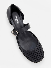 DESCRIPTION - Lining: With logo - Model: Pierced - Toe: With flowers - Sole: Leather - Closure: With adjustable strap - Materials: Smooth calfskin - Pattern: Plain-colored DETAILS AND CARE Composition 100% LEATHER SIZE AND FIT Sizes not available Designer code: SS25S06 018MASB001 Giglio Code: H17177 Designer: Durazzi Milano Collection: Durazzi Milano Woman Category: Shoes Durazzi Milano