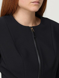 DESCRIPTION - Style: Classic - Neckline: Crewneck - Shoulders: Padded, Regular - Sleeves: Long - Closure: With zip - Pockets: With zip - Bottom: With straight hemline - Length: Short jackets - Materials: Crepe - Pattern: Plain-colored DETAILS AND CARE Composition 96%PL04%EA SIZE AND FIT Sizes not available Size and fit Slim fit Designer code: GI173 110 Giglio Code: H26519 Designer: Elisabetta Franchi Collection: Elisabetta Franchi Woman Category: Clothing Elisabetta Franchi