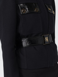 DESCRIPTION - Style: Elegant - Neck: Classic - Shoulders: Regular - Sleeves: Long - Waist: With belt - Bottom: With straight hemline - Pockets: Patch with flap - Closure: Concealed - Length: Short jackets - Materials: Crepe - Pattern: Plain-colored DETAILS AND CARE Composition 75% POLYESTER 22% VISCOSE 3% ELASTANE SIZE AND FIT Sizes not available Size and fit Regular fit Designer code: GB003 110 Giglio Code: H27355 Designer: Elisabetta Franchi Collection: Elisabetta Franchi Woman Category: Clothing Elisabetta Franchi