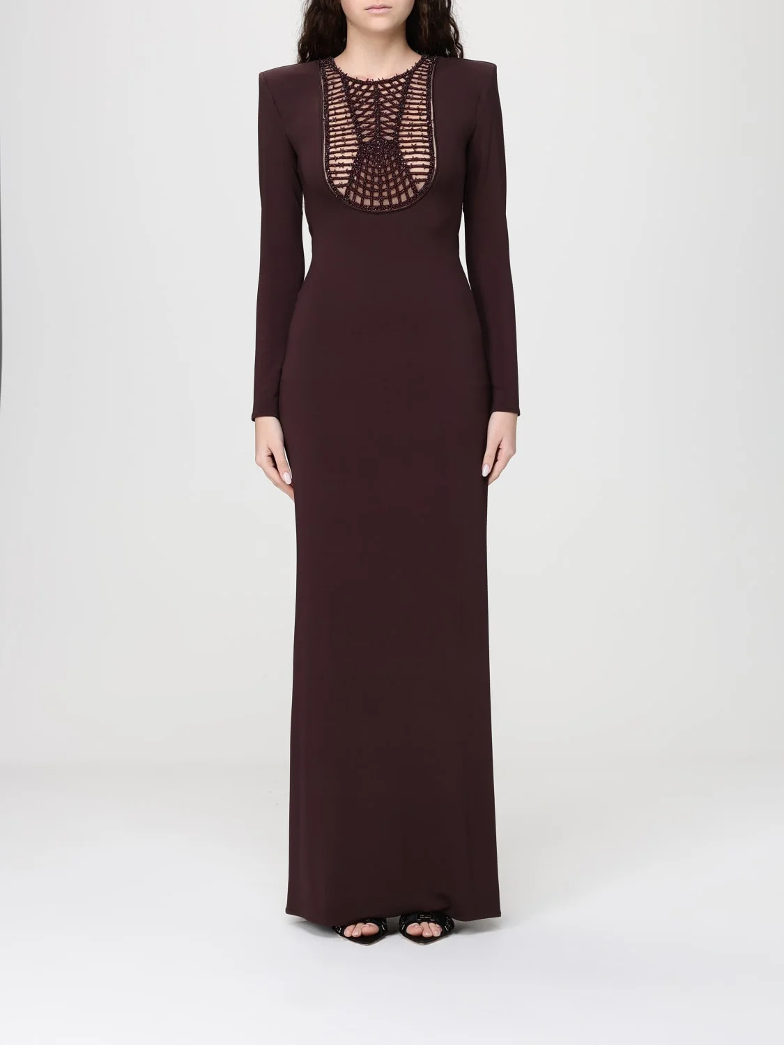 DESCRIPTION - Style: Elegant - Details: With beads - Neckline: Crewneck - Shoulders: Regular - Bottom: With side slit, With straight hemline - Length: Long dresses - Occasion: Ceremony and cocktail dresses, Evening and party dresses - Sleeves: Long sleeve dresses - Materials: Jersey - Pattern: Embroidery, Plain-colored DETAILS AND CARE Composition not available SIZE AND FIT Sizes not available Size and fit Slim fit Designer code: ABR3962E2 644 Giglio Code: I03678 Designer: Elisabetta Franchi Collection: Clothing Elisabetta Franchi Category: Clothing > Dress