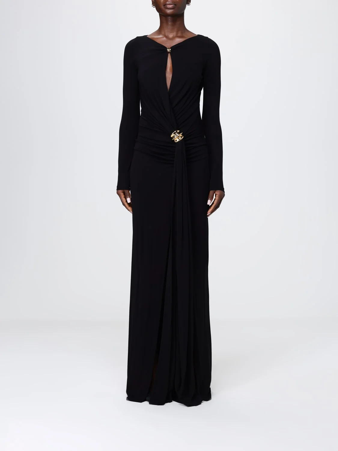 DESCRIPTION - Style: Elegant - Model: Draped - Neckline: Crewneck - Shoulders: Regular - Closure: Back closure with zip - Waist: Curled - Bottom: With straight hemline - Length: Long dresses - Occasion: Ceremony and cocktail dresses, Evening and party dresses - Sleeves: Long sleeve dresses - Materials: Jersey - Pattern: Plain-colored DETAILS AND CARE Composition Viscose | 95% VISCOSE,5% ELASTANE SIZE AND FIT Sizes not available Size and fit Slim fit Designer code: ABR1461E2 110 Giglio Code: H90797 Designer: Elisabetta Franchi Collection: Clothing Elisabetta Franchi Category: Clothing > Dress