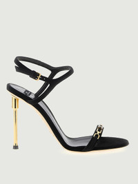 DESCRIPTION - Logo: Metallic, Monogram, Rhinestone - Lining: Leather, With logo - Toe: Open, Round - Ankle: With strap - Sole: Leather - Heel: Tacco alto a spillo - Materials: Suede calfskin - Pattern: Logo, Plain-colored DETAILS AND CARE Composition 100% calfskin leather (Bos Taurus) SIZE AND FIT Sizes Heel: 11 cm Designer code: SA89L 110 Giglio Code: H27220 Designer: Elisabetta Franchi Collection: Elisabetta Franchi Woman Category: Shoes Elisabetta Franchi