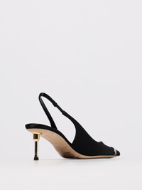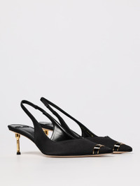 DESCRIPTION - Logo: Enameled, Metallic, Monogram - Lining: Leather, With logo - Model: Slingback - Toe: Almond - Sole: Leather - Heel: With stretch strap , Tacco medio scultoreo - Materials: Satin - Pattern: Monogram DETAILS AND CARE Composition 75% COTTON 25% VISCOSE SIZE AND FIT Sizes Heel: 6,5 cm Designer code: SA17L 110 Giglio Code: H27362 Designer: Elisabetta Franchi Collection: Elisabetta Franchi Woman Category: Shoes Elisabetta Franchi