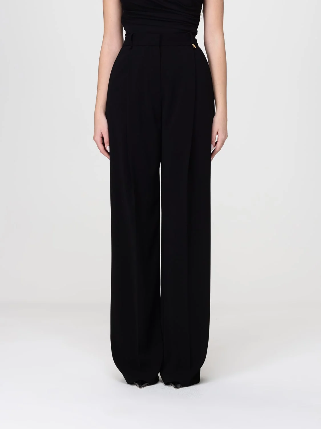 DESCRIPTION - Style: Classic, Formal - Pockets: America , Back slit pocket - Waist: High waist - Bottom: With straight hemline - Closure: With button and zip - Materials: Crepe - Pattern: Plain-colored DETAILS AND CARE Composition 98%PL02%EA SIZE AND FIT Sizes not available Size and fit Narrow leg Designer code: PA16761E2 110 Giglio Code: H97255 Designer: Elisabetta Franchi Collection: Clothing Elisabetta Franchi Category: Clothing > Pants