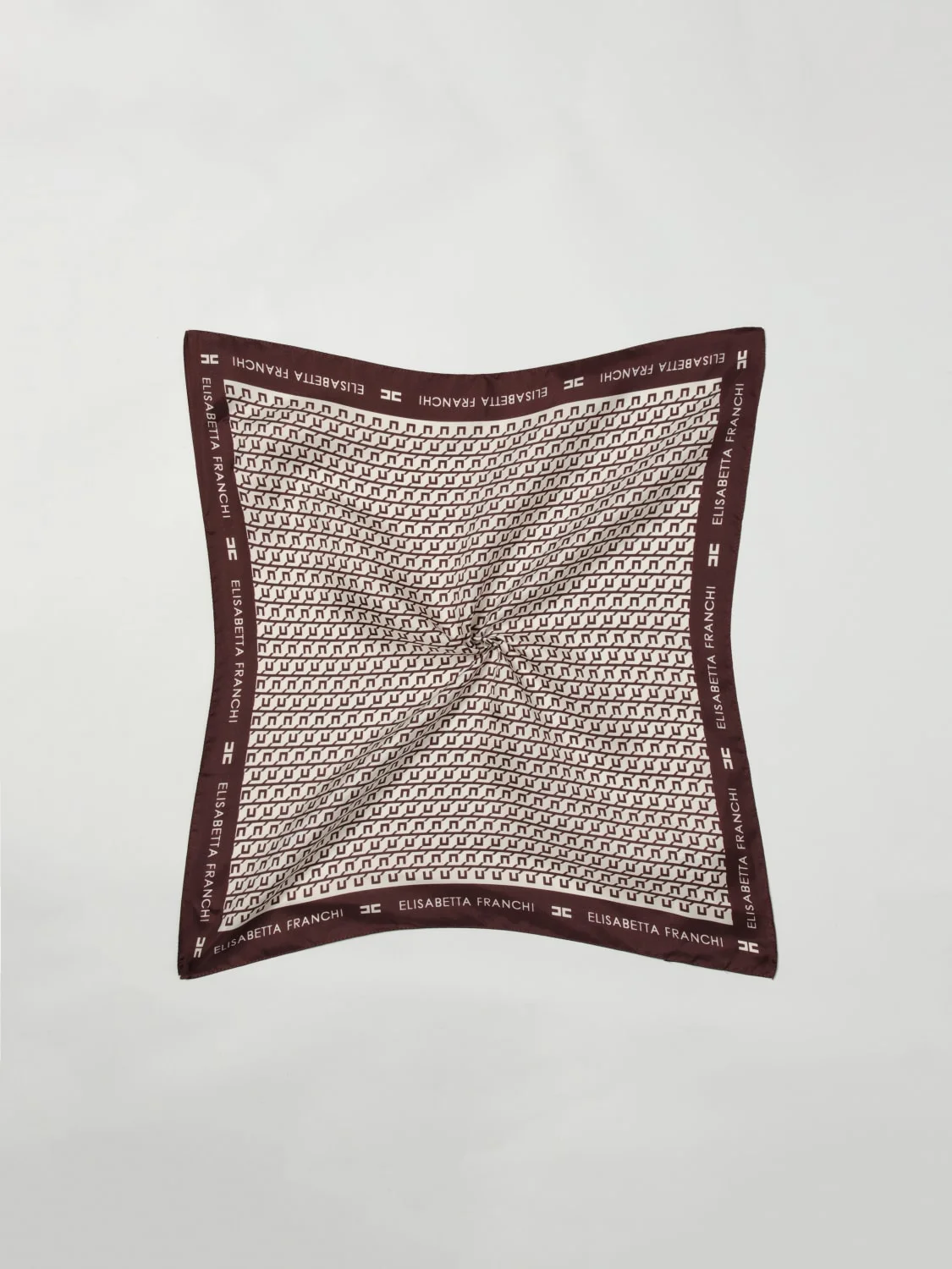 DESCRIPTION - Logo: Monogram, Print - Bottom: With straight hemline - Shape: Squared - Materials: Silk - Pattern: Monogram DETAILS AND CARE Composition 100%SE Wash and Care Dry clean SIZE AND FIT Sizes not available Designer code: FO15F EH8 Giglio Code: H26684 Designer: Elisabetta Franchi Collection: Elisabetta Franchi Woman Category: Accessories Elisabetta Franchi