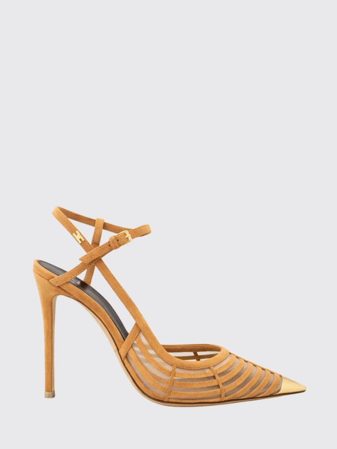 DESCRIPTION - Style: Elegant - Occasion: Ceremony and cocktail, Evening and party - Logo: Metallic, Monogram - Lining: Leather, With logo - Toe: Almond, Metal - Ankle: With strap - Sole: Leather - Heel: Tacco alto a stiletto - Materials: Suede - Pattern: Plain-colored DETAILS AND CARE Composition 100%pelle SIZE AND FIT Sizes Heel: 10 cm Designer code: SA01L62E2 EV8 Giglio Code: I08318 Designer: Elisabetta Franchi Collection: Shoes Elisabetta Franchi Category: Shoes > Pump